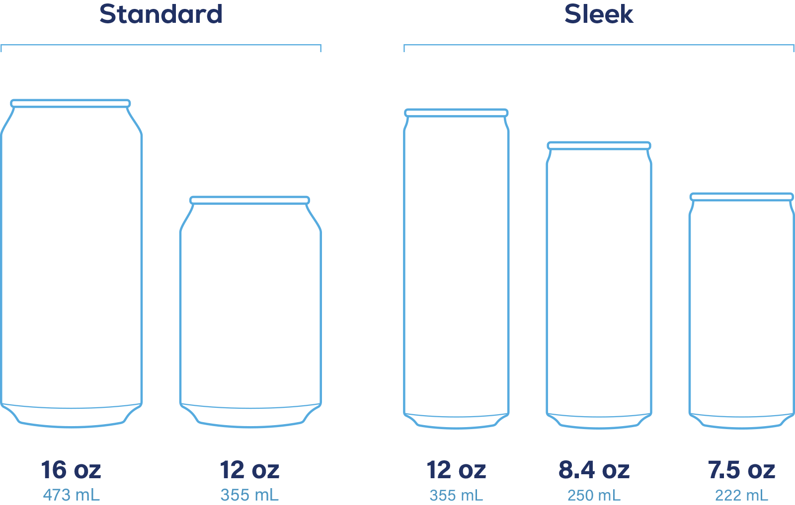 Carbonated and nitrogen dosed beverages in cans of 16 oz standard, 12 oz standard, 12 oz sleek, 8.4 oz sleek, and 7.5 oz sleek.